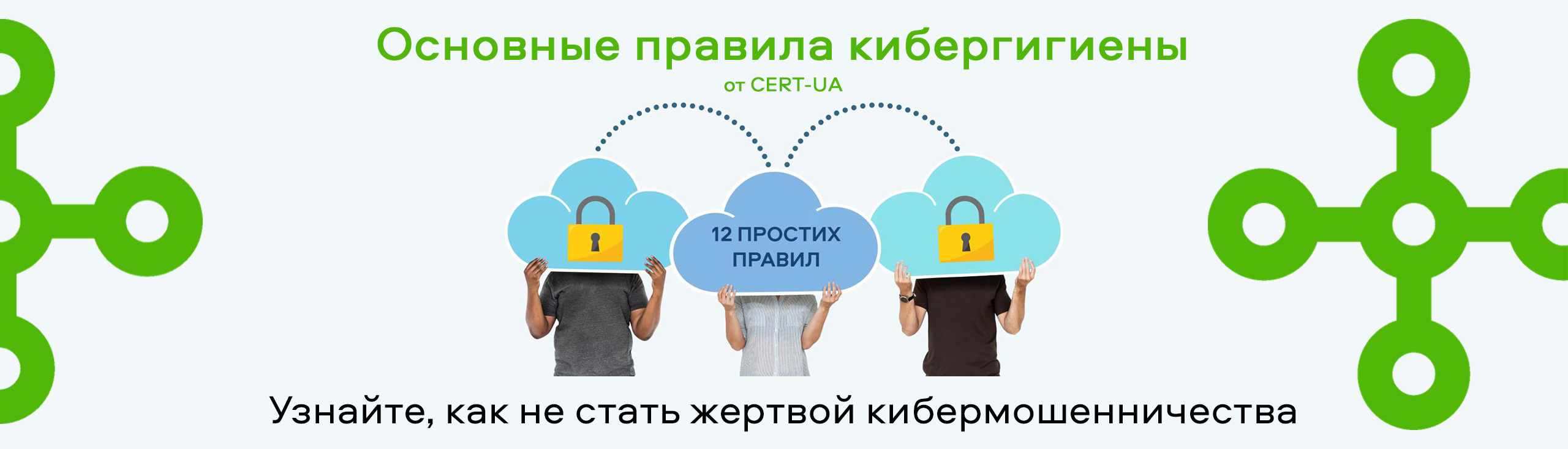 Как ответственный оператор связи мы предлагаем вам ознакомиться с простыми правилами кибергигиены, которые разработали в подразделении Государственного центра киберзащиты и противодействия киберугрозами Государственной службы специальной связи и защиты информации Украины — CERT-UA.